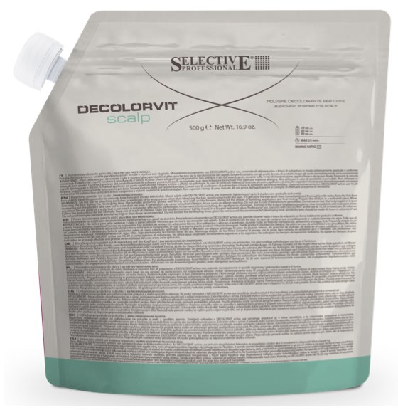 Decolorvit Scalp Bleach, a non-volatile bleaching powder for all types of bleaching. Specially designed to bleach on the scalp and for highlights with foils. It allows achieving high levels of bleaching in total safety and in full respect of the hair structure.